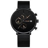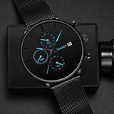 Blue Pointer Men Watch Quartz Casual Simple Alloy Mesh Matte Male Business Temperament Calendar Wrist Watch Relojes Para Hombre