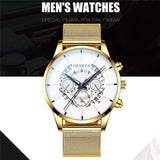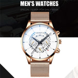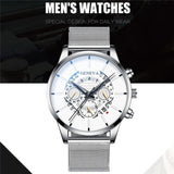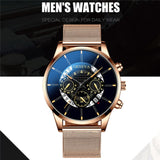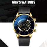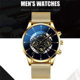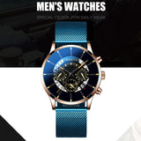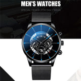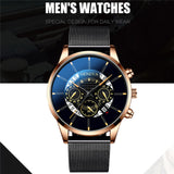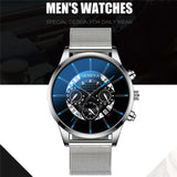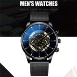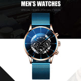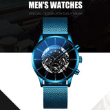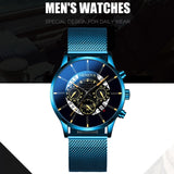 Luxury Men's Fashion Business Calendar Watches Blue Stainless Steel Mesh Belt Analog Quartz Watch relogio masculino