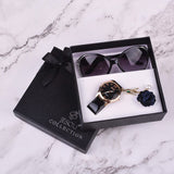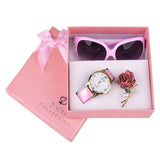 Sunglasses watch brooch 3 pcs ladies gift box Girl christmas gift new year gift Fashion Clock Women Watches leather Quartz Wrist